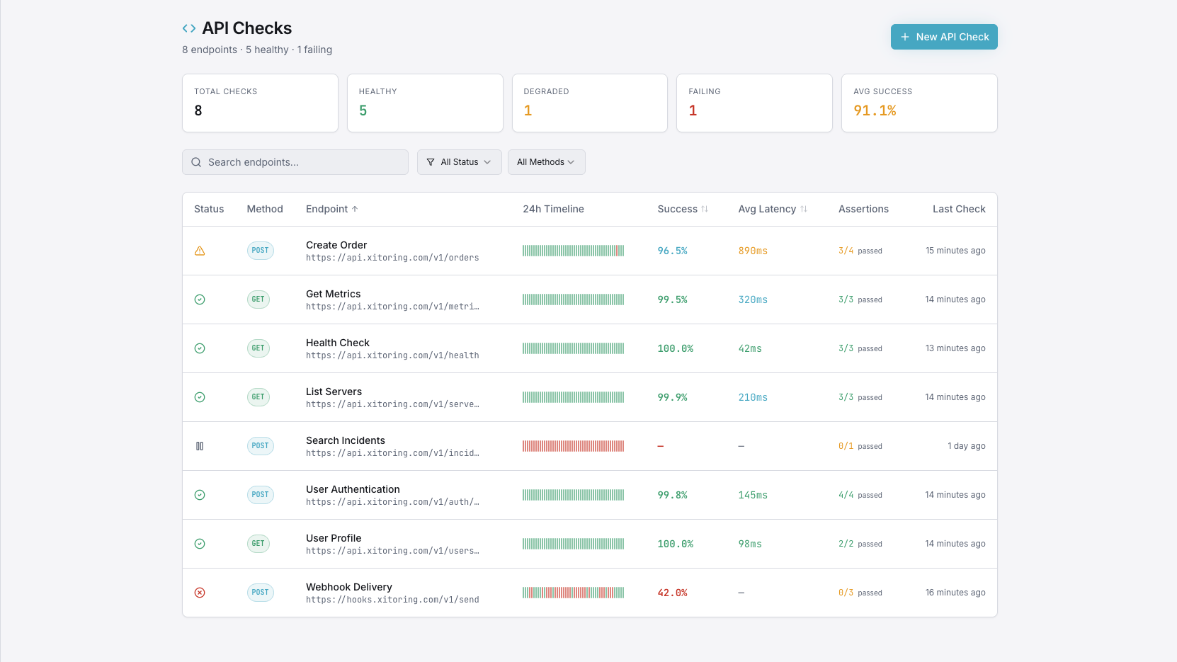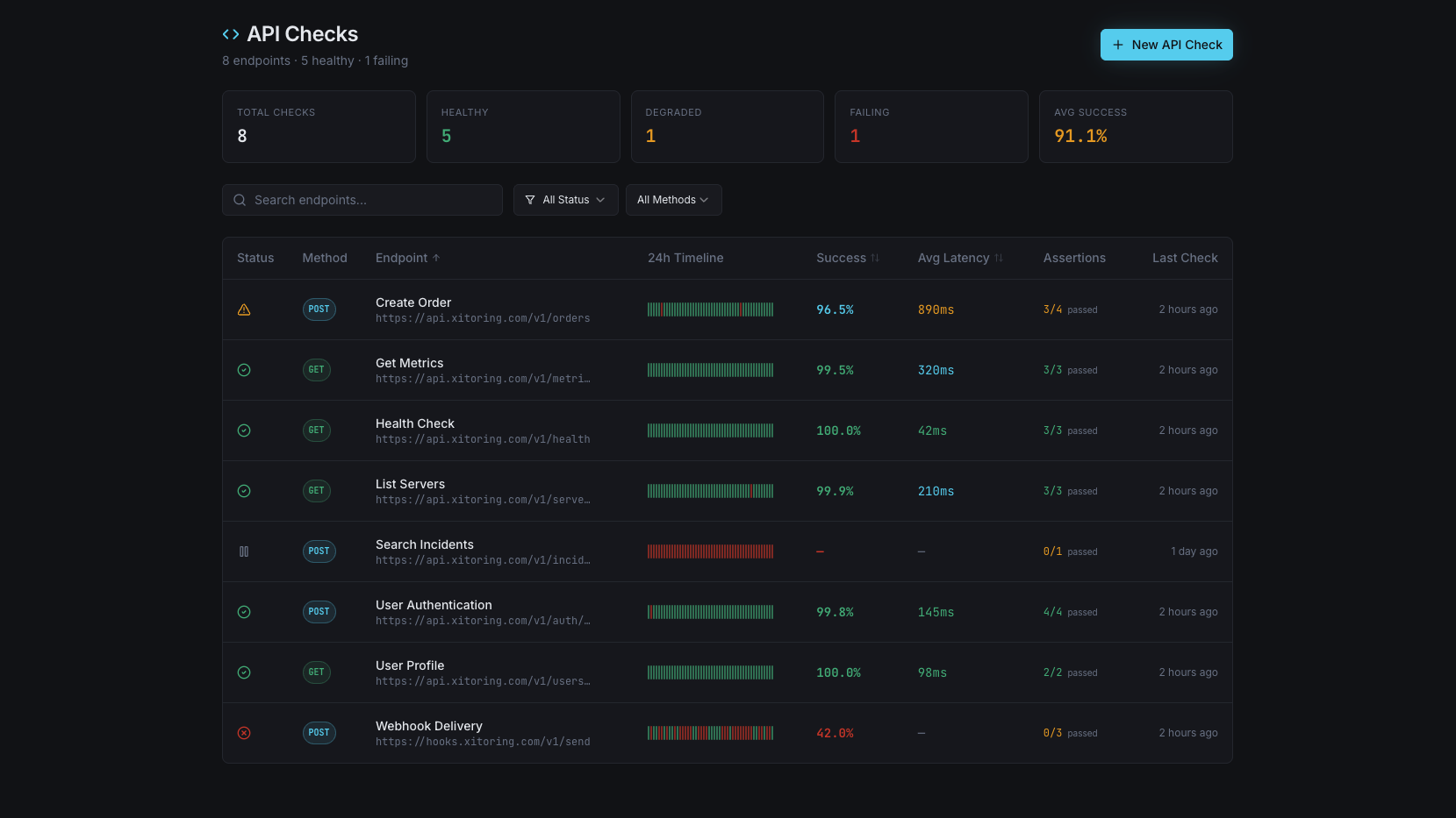 API Monitoring ensures your services stay fast and reliable. Xitoring tracks REST & GraphQL endpoints, measures latency, and alerts your team instantly when issues arise.