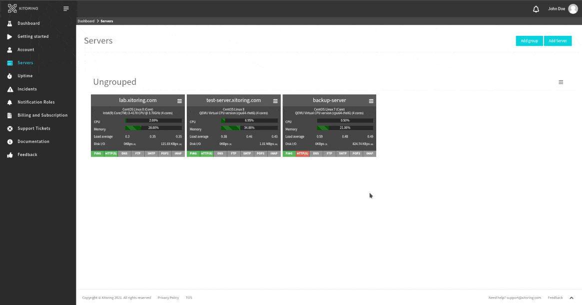 Xitogent's Bash Installer empowers you with an automatic installation process that is as simple as copy and paste. After registering and verifying your email on Xitoring, adding servers to the panel becomes a breeze. The "Add Server" window presents various customization options, such as grouping, notification roles, and supported operating systems. You have the flexibility to enable or disable features like Auto Discovery, Auto Update, and Auto Trigger. Additionally, Xitogent enables you to fine-tune Checks and Triggers to suit your monitoring preferences.